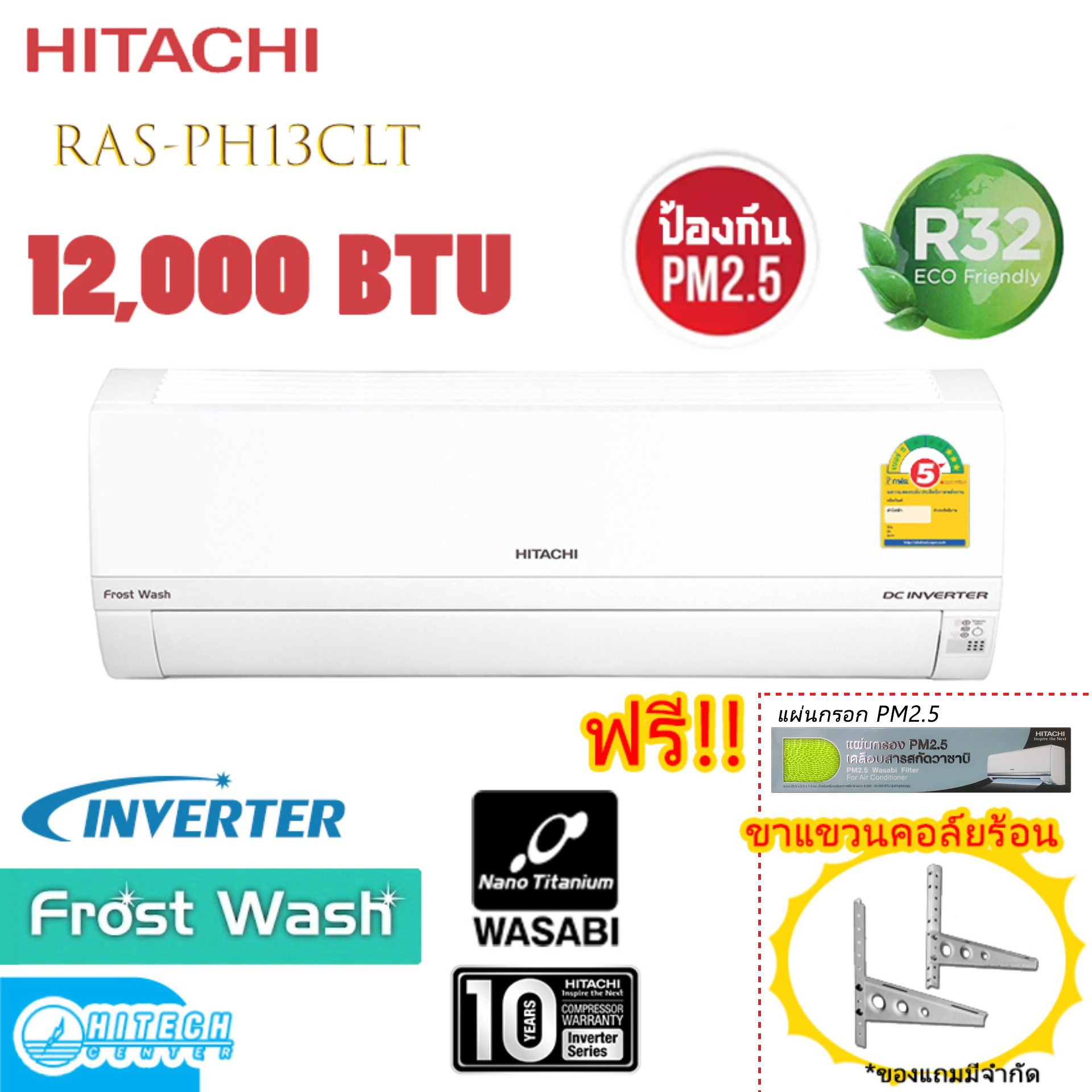 HITACHI แอร์ ระบบฟอกอากาศ อินเวอร์เตอร์ 12,000 BTU รุ่น RAS-PH13CLT **คอล์ยร้อนเป็นทองแดง มีส่วนลด มีส่วนลดราคาประหยัดที่สุด